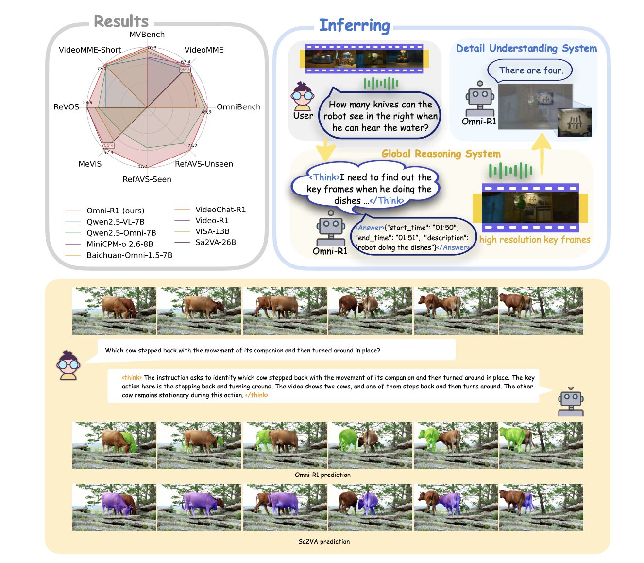 > Haoz0206/Omni-R1 is a video reasoning model with pixel level grounding (see below) and it's super competitive โฏ๏ธ based on Qwen/Qwen2.5-Omni-7B