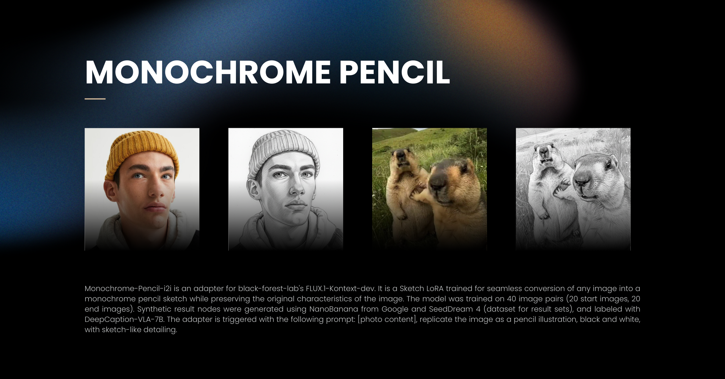 prithivMLmods/Monochrome-Pencil: Turn images into monochrome pencil sketches while keeping original features.