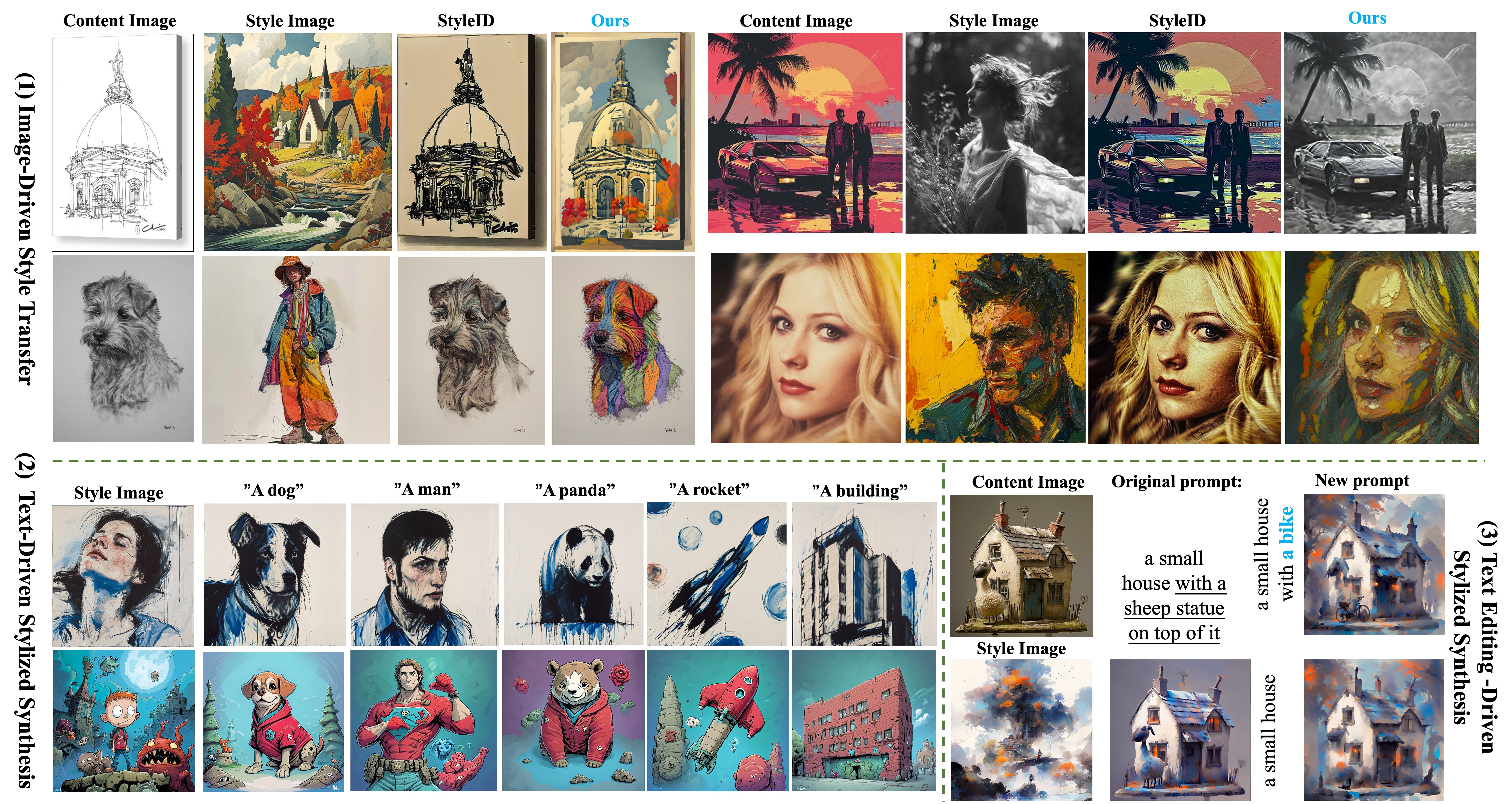π₯ Our CSGO achieves image-driven style transfer, text-driven stylized synthesis, and text editing-driven stylized synthesis.