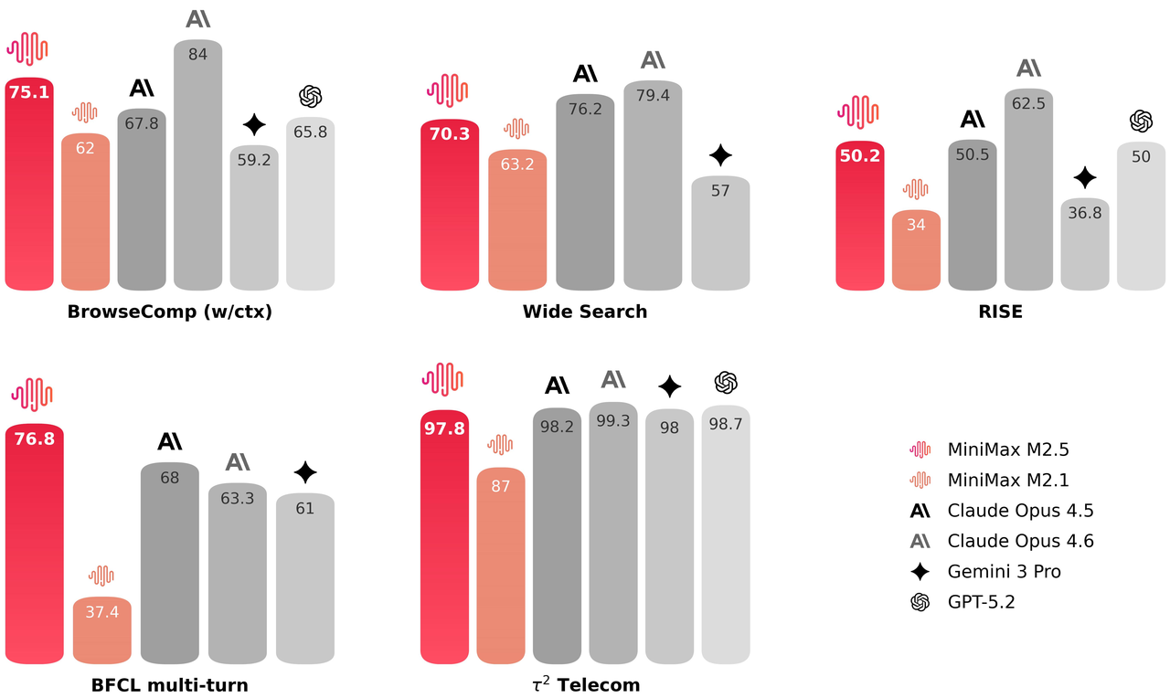 - On OpenCode: 76.1(M2.5) > 75.9(Opus 4.6)