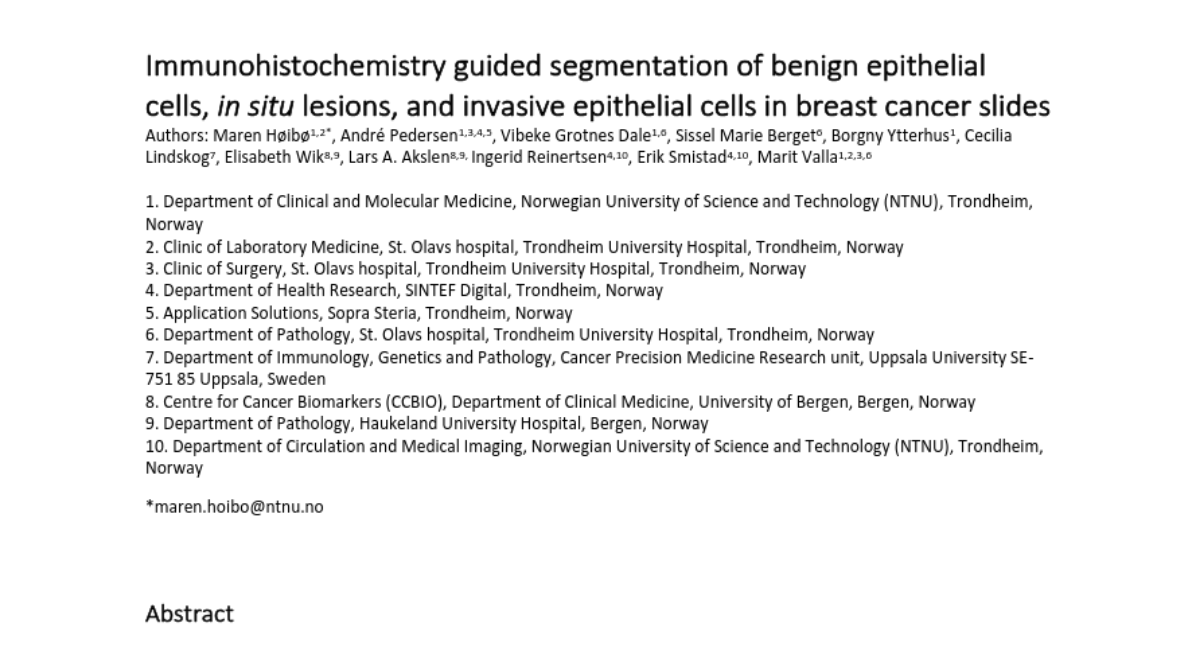 Immunohistochemistry guided segmentation of benign epithelial cells, in situ lesions, and invasive epithelial cells in breast cancer slides