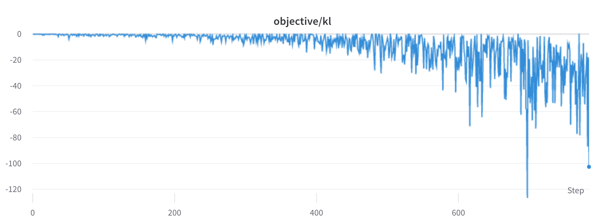 A common issue with training the language model with RL is that the model can learn to exploit the reward model by generating complete gibberish, which causes the reward model to assign high rewards. To balance this, we add a penalty to the reward: we keep a reference of the model that we don’t train and compare the new model’s generation to the reference one by computing the KL-divergence: