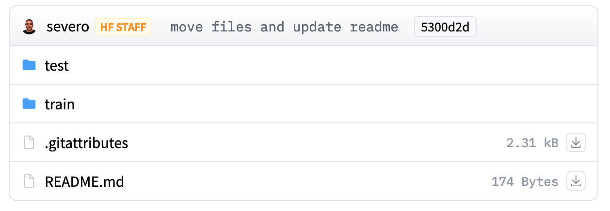 5 datasets showcase YAML configuration on HuggingFace. See docs: https://huggingface.co/docs/hub/datasets-manual-configuration.
